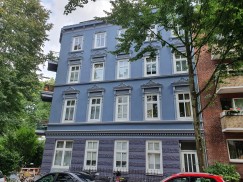 Sobald man sich etwas von der Osterstraße entfernt, wendet sich das Blatt aber recht schnell zum Guten. Der Baustil der Wohnhäuser und Kleingewerbe in Nebenstraßen sind eine hübsche Mischung aus Backsteinarchitektur ála Barmbek und Historismus, wie er im benachbarten Rotherbaum und Harvestehude zu finden ist. Vom eher tristen Anblick der Haltestelle ist hier nicht mehr viel übrig. Die Sicht wird grüner, der Lärm schwindet und der Blutdruck sinkt. Meinem ersten, eher nüchternen, Eindruck der Gegend wird also direkt gegengehalten.